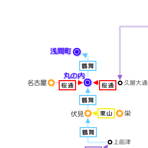 名古屋市営地下鉄桜通線名古屋駅 →名古屋市営地下鉄桜通線丸の内駅 |