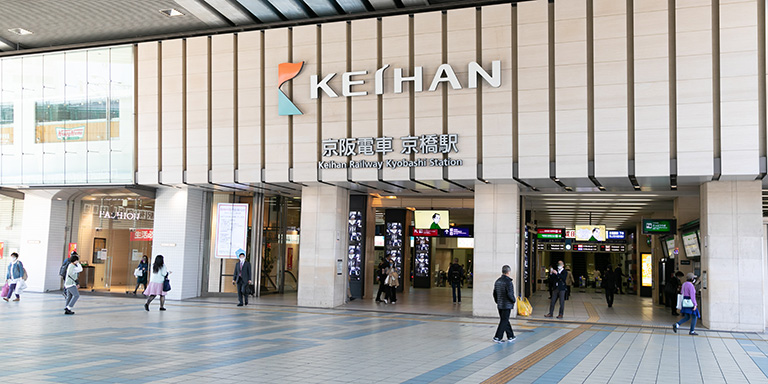 迷路のように張り巡らされた駅前の細い路地には、お昼から開いている居酒屋さんなどがぎっしり!一方、百貨店やすぐそばにはオフィスビルが立ち並ぶビジネスの集積地・大阪ビジネスパーク、大阪城公園などもあります。同じ京橋の中でも場所によって雰囲気ががらりと変化するエリアです。